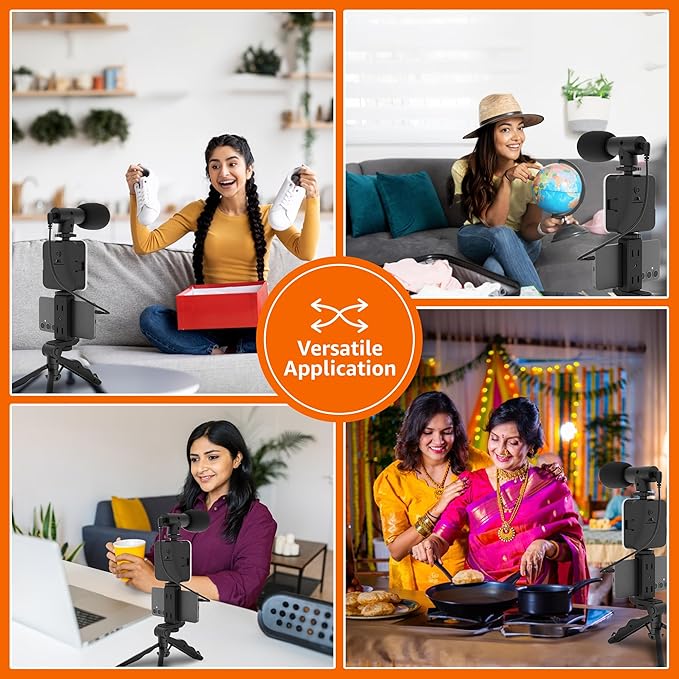 6-in-1 Vlogging Kit for All Phones | Tripod, LED Video Light, Cardioid Microphone, Phone Clip, Bluetooth Remote & Microphone Cable | Useful for Live Broadcasting, Video Calling